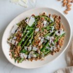 Transfer the cooked green beans to a serving plate while pouring any balsamic vinegar still in the pan over them. Top with the crispy bread crumb mixture and shaved parmesan and drizzle with balsamic reduction if desired. Enjoy!