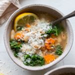 Ladle the soup into bowls and top each with a lemon slice, a sprinkle of freshly grated parmesan, and a drizzle of olive oil. Serve warm and enjoy!